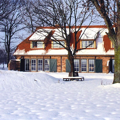 Follow a 1,5 km long alley to Pansevitz. Turn left at the end of the road. The last house surrounded by meadows and fields. You have reached the Eichenkaten. |